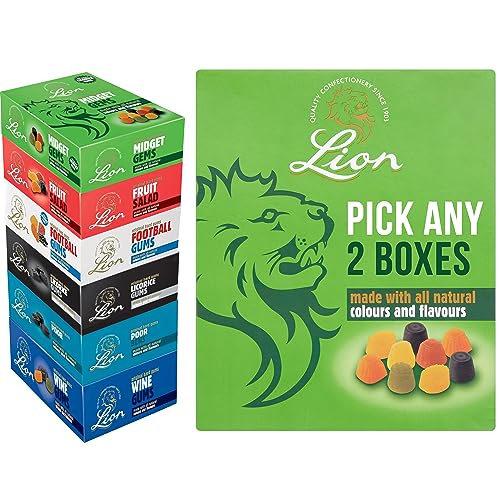 Lion 2kg Boxes Pick Any 2, You Choose the Ones You Want; Lion Midget Gems, Football Gums, Licorice Gums, Wine Gums, Fruit Salad And Poor Bens