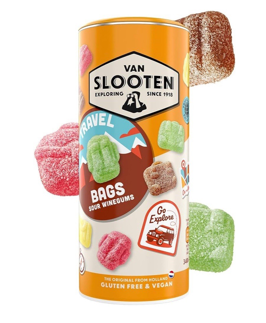 Van Slooten Travel Bag Sour Coated Fruit Wine Gums 340g Tube Vegan *BBE 10/2025*