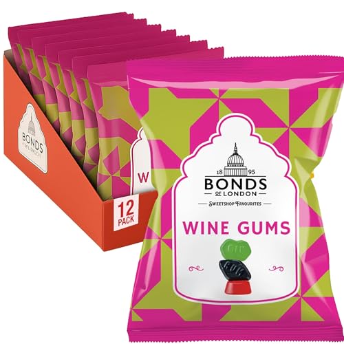 Bonds of London Wine Gums Bags, Retro Chewy Fruit Flavoured Sweets, Vegetarian Friendly, 120 g (Pack of 12)