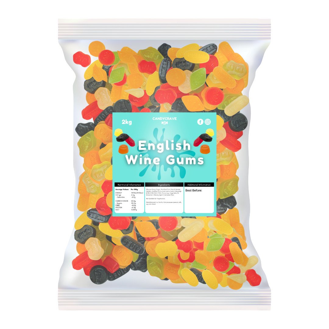 Candycrave English Wine Gums Gummy Jelly Pick N Mix Party Sweets Bulk Bag 2kg