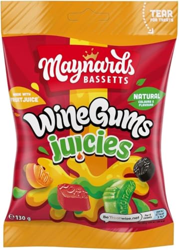 Maynards Bassetts Wine Gums Juicies Sweets, Bursting With Fruity Flavours, 130 g Bag (Pack of 1)