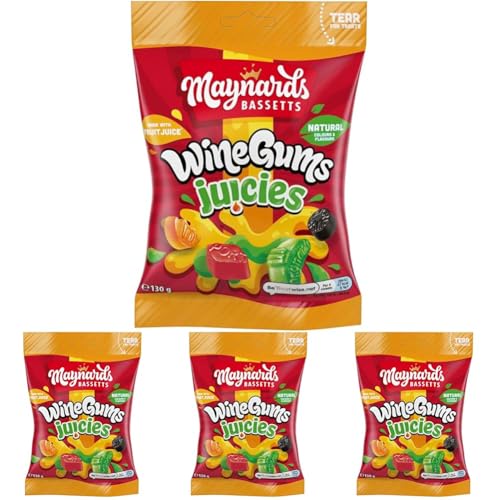 Maynards Bassetts Wine Gums Juicies Sweets, Bursting With Fruity Flavours, 130 g Bag (Pack of 4)
