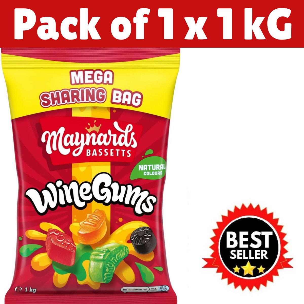 Maynards Bassetts Wine Gums,Mega Sharing Bag, Perfect Sweet Treat,1kg(Pack of 1)