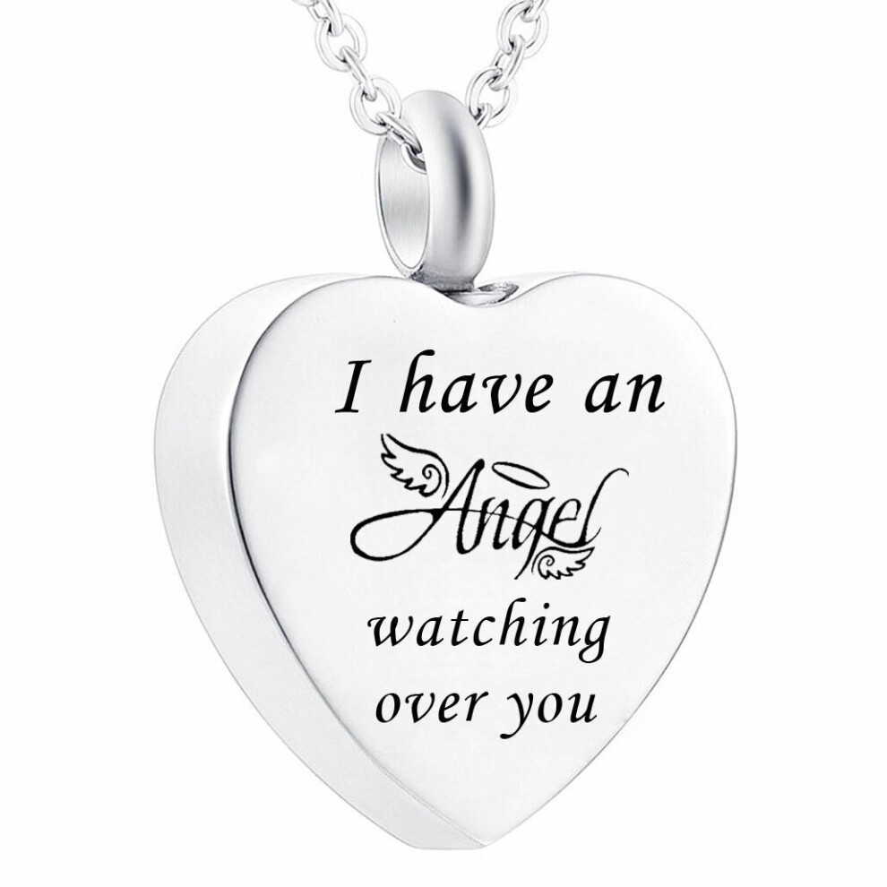 (White) Cremation Jewelry I here an watching over you Angel Wing Cremation Ashes Urn Pendant with Personalized Engraving