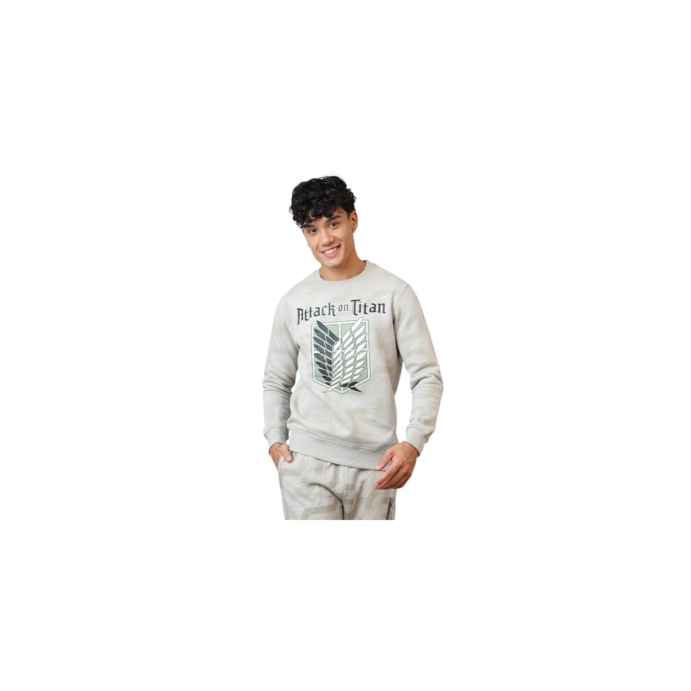 Free Authority Official Attack On Titan: Wings Of Freedom Anime Printed Grey Regular Fit Sweatshirt For Men