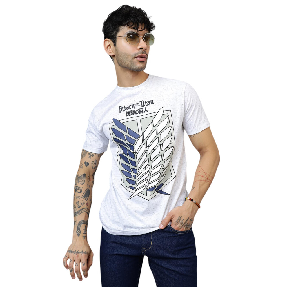 Free Authority Official Attack On Titan: Wings Of Freedom Anime Graphic Print Pure Cotton White Regular Fit Tshirt For Men