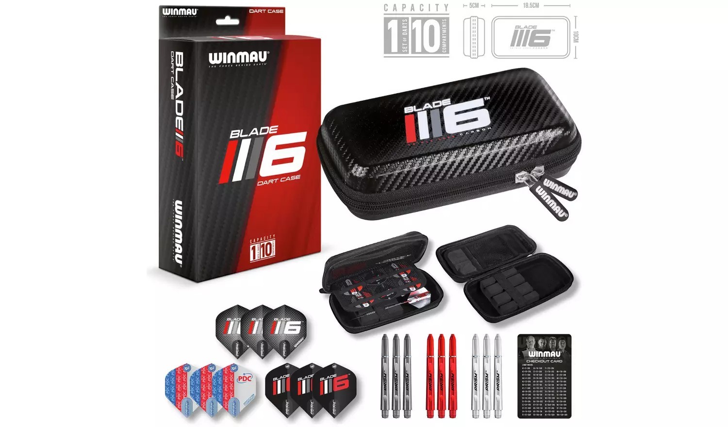 WINMAU Blade 6 Urban-Pro Dart Case – Holds 2 Sets of Fully Assembled Darts, 17 Compartments, Stylish Blade 6 Branded, Durable Darts Accessories Organizer & Dart Storage Solution