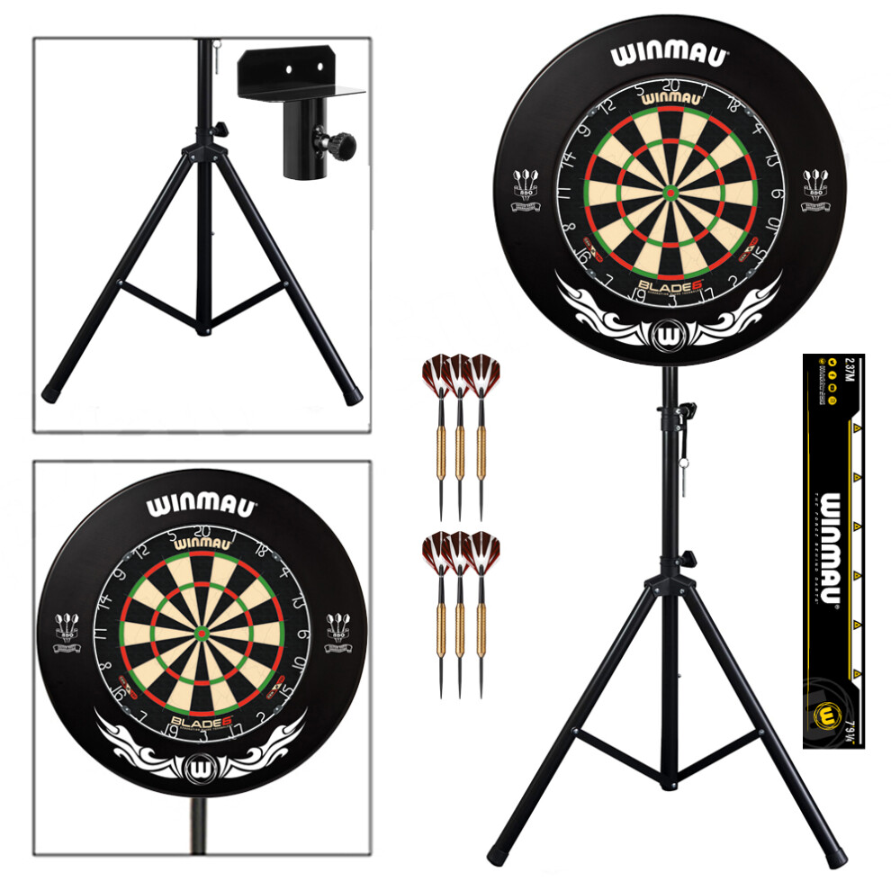 Darts Stand With Winmau Blade 6 Dartboard, Surround and Darts