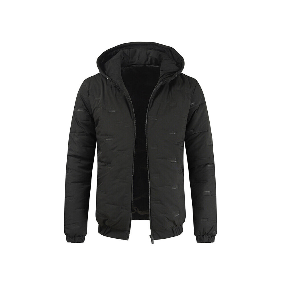 Winter Down Jacket Man Slim Thick Solid Embossing Hooded Full Sleeve Zipper Open Stitch Casual Warm Coats
