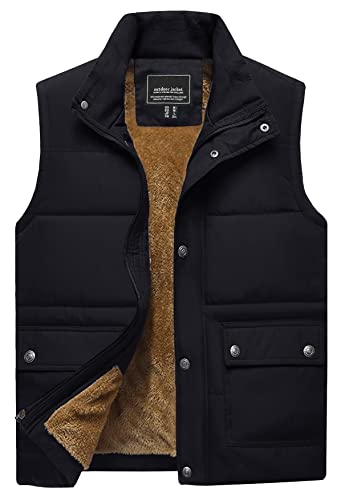 TACVASEN Body Warmers for Man Fleece Lined Outerwear Gilets Winter Warm Sleeveless Jacket Windproof Quilted Gillette Body Warmer Black, 3XL