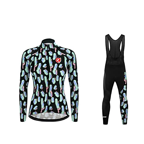 UGLY FROG Women Long Sleeve Cycling Jersey Suit Winter Thermal Fleece Sportswear Set Long Sleeve Windproof Jersey Coat Jacket + 3D Padded Pants Trousers