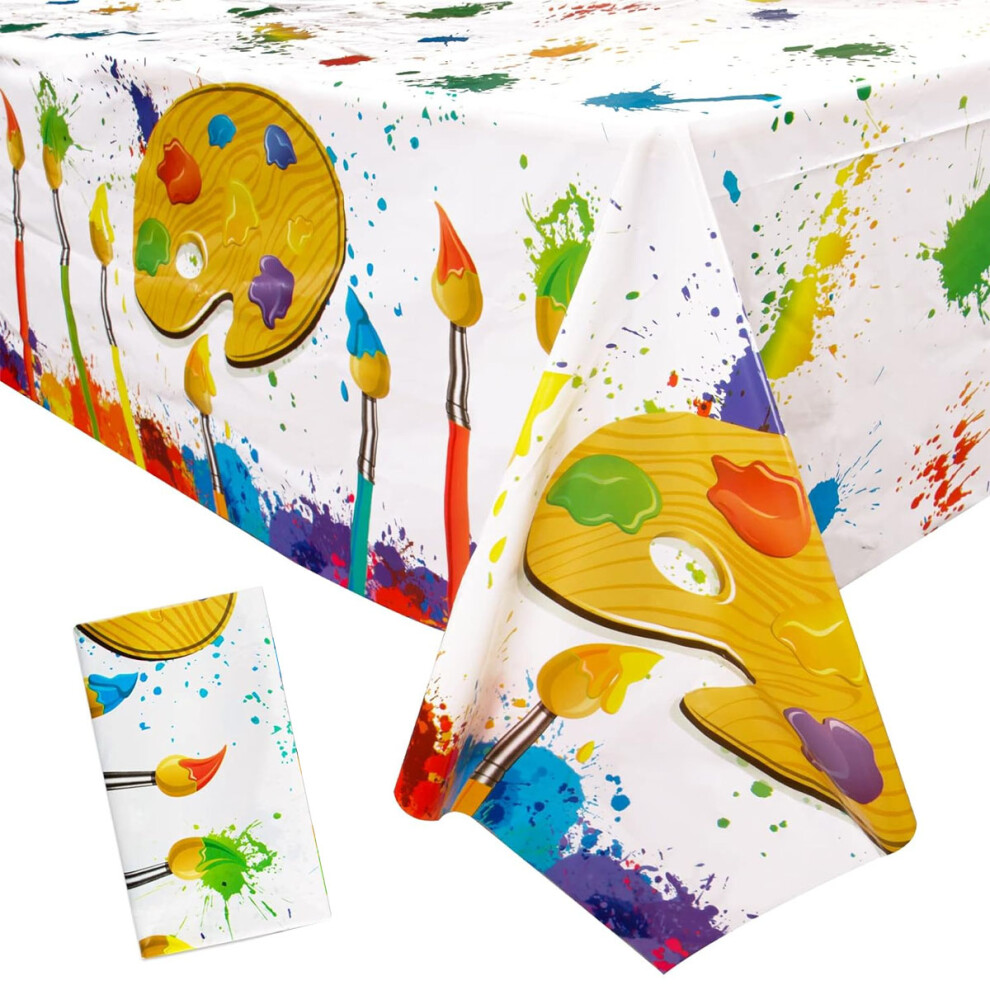 Artist Plastic Tablecloth For Art Birthday Party, Paint Splatter Party Decoration, Unique Oil Painting Design, Waterproof And Wipe Clean, Suitable For