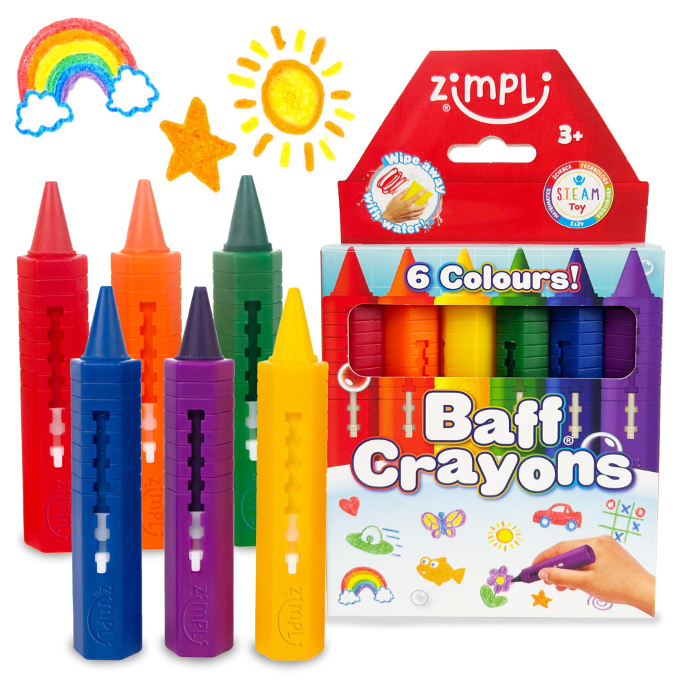 ZIMPLI - 6 Large Bath Crayons, Washable Colourful Kids Bath Pens, Creative Mess-Free Shower Toy, Wipe Clean Bath Fun, Paint Sticks for the Tub, Arts & Crafts