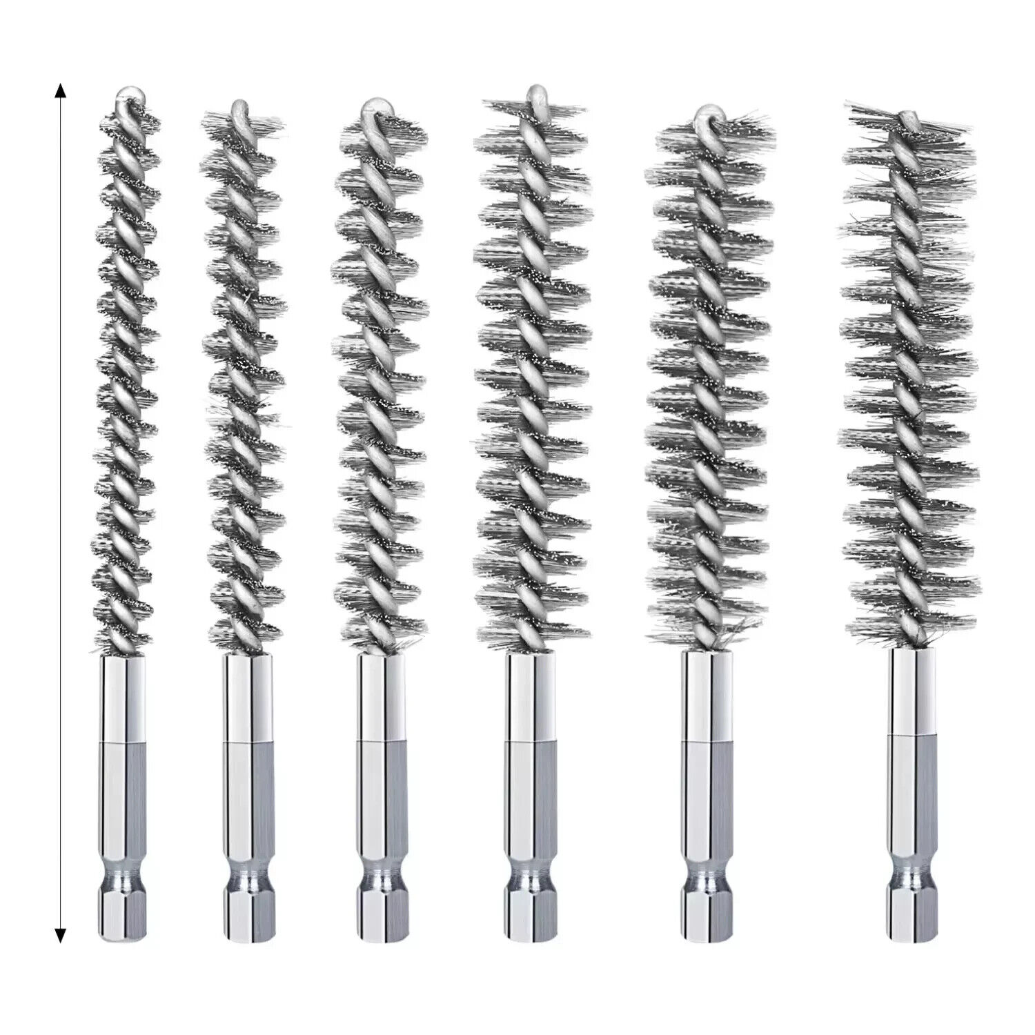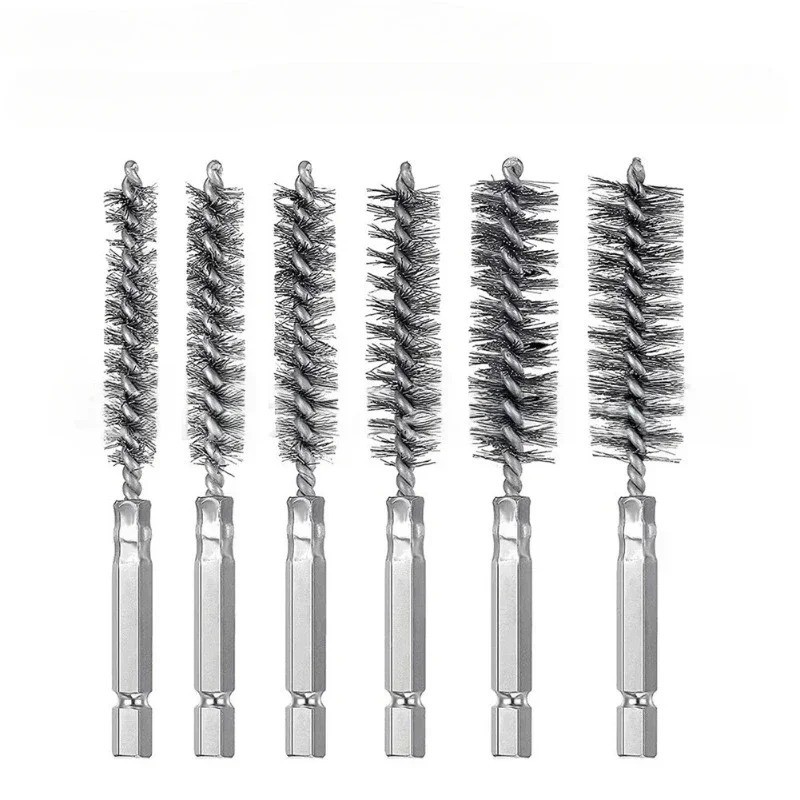 6 x Stainless Steel Wire Brush Drill Attachment Set Bore Brush Rust-Pipe Cleaner