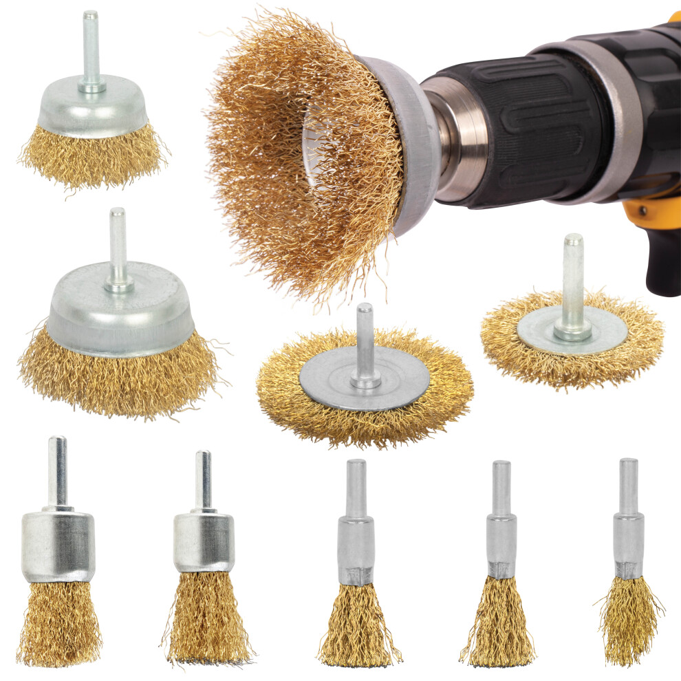 Wire Brush Set Drill Attachment 9pcs Small Heavy Duty Brass Metal Rust Remover