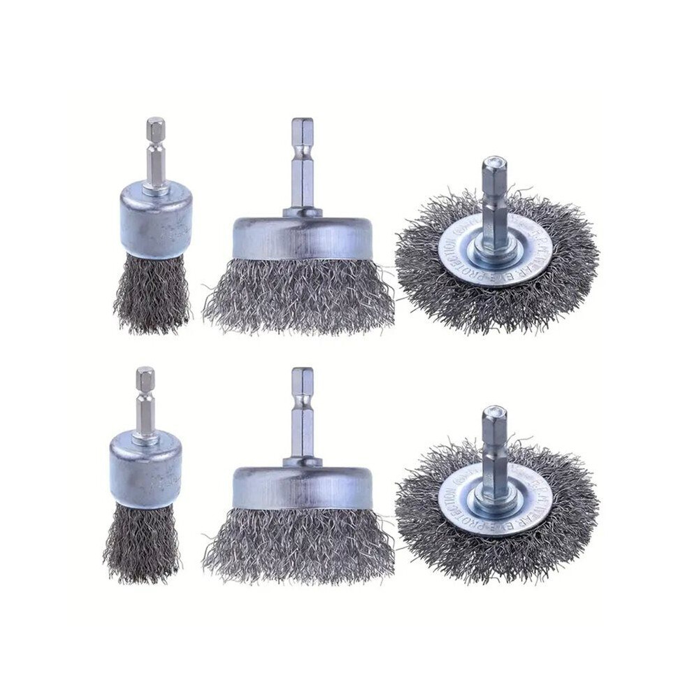 6PC Rotary Steel Wire Brush Drill Attachment Cup Wheel Set Tool Rust Removal Set