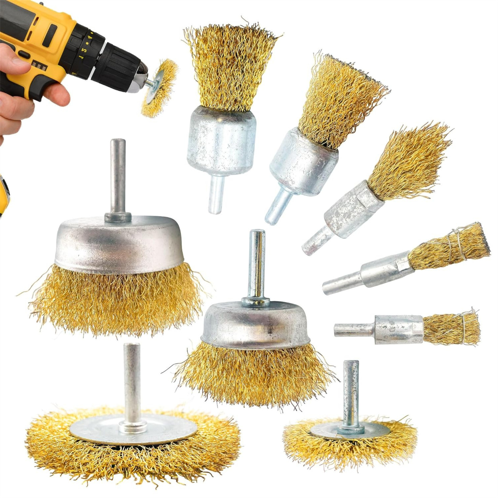 (As show, One size) 9pcs Wire Brush For Drill Attachment Electric Wire Brush Wheel Assortment