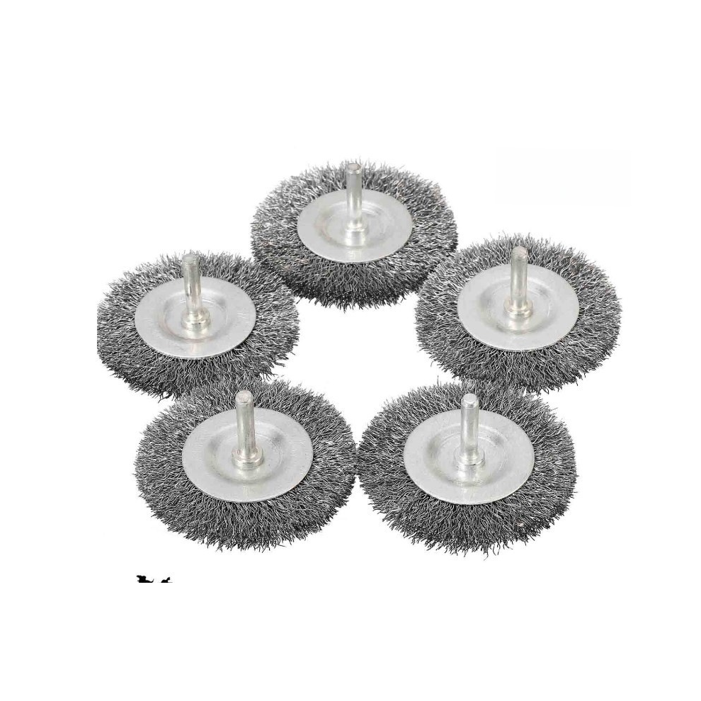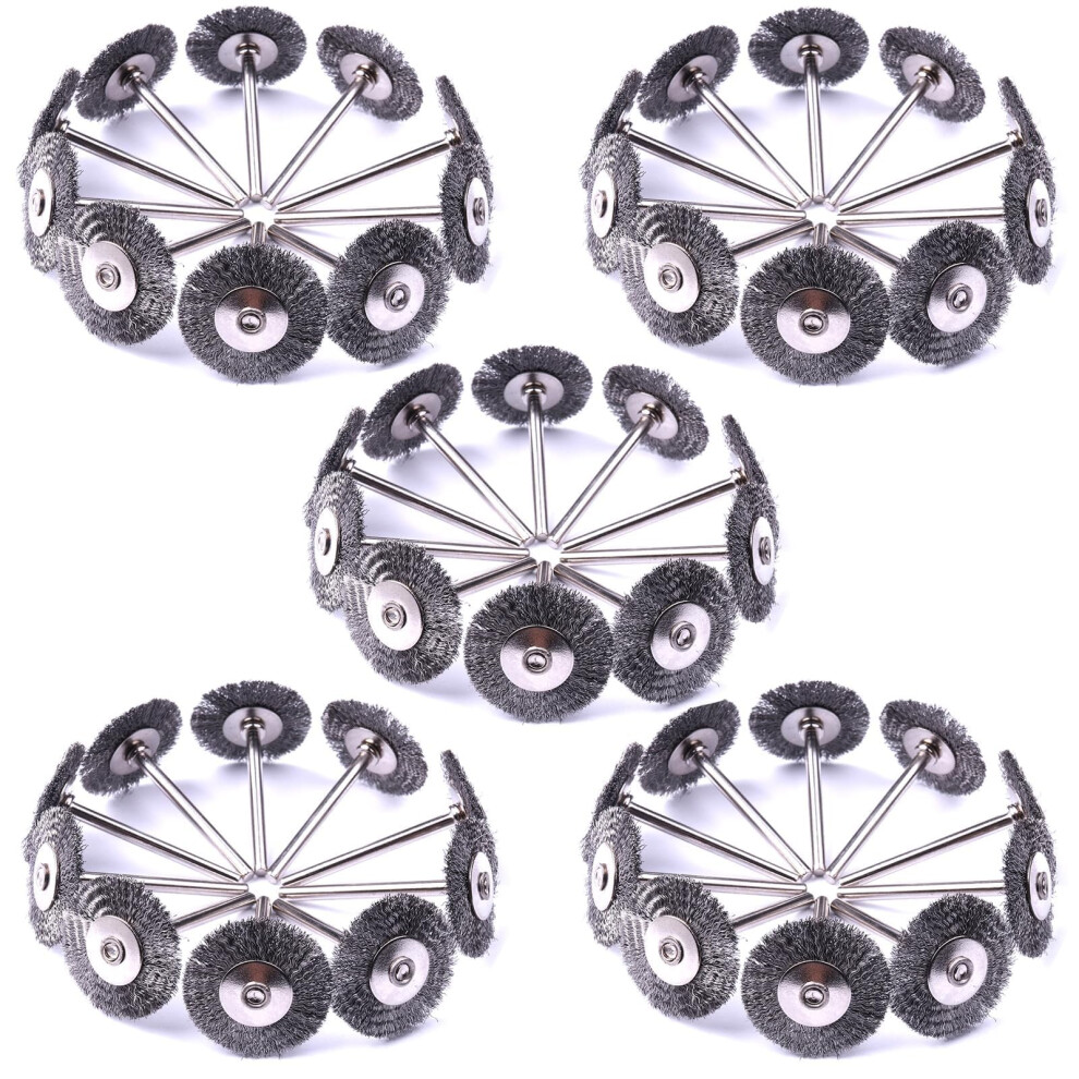 Wire brush set, 50 pieces 1 inch/25mm mini wire brush with 3mm round shank, alloy steel wire brush for drill attachment (50)