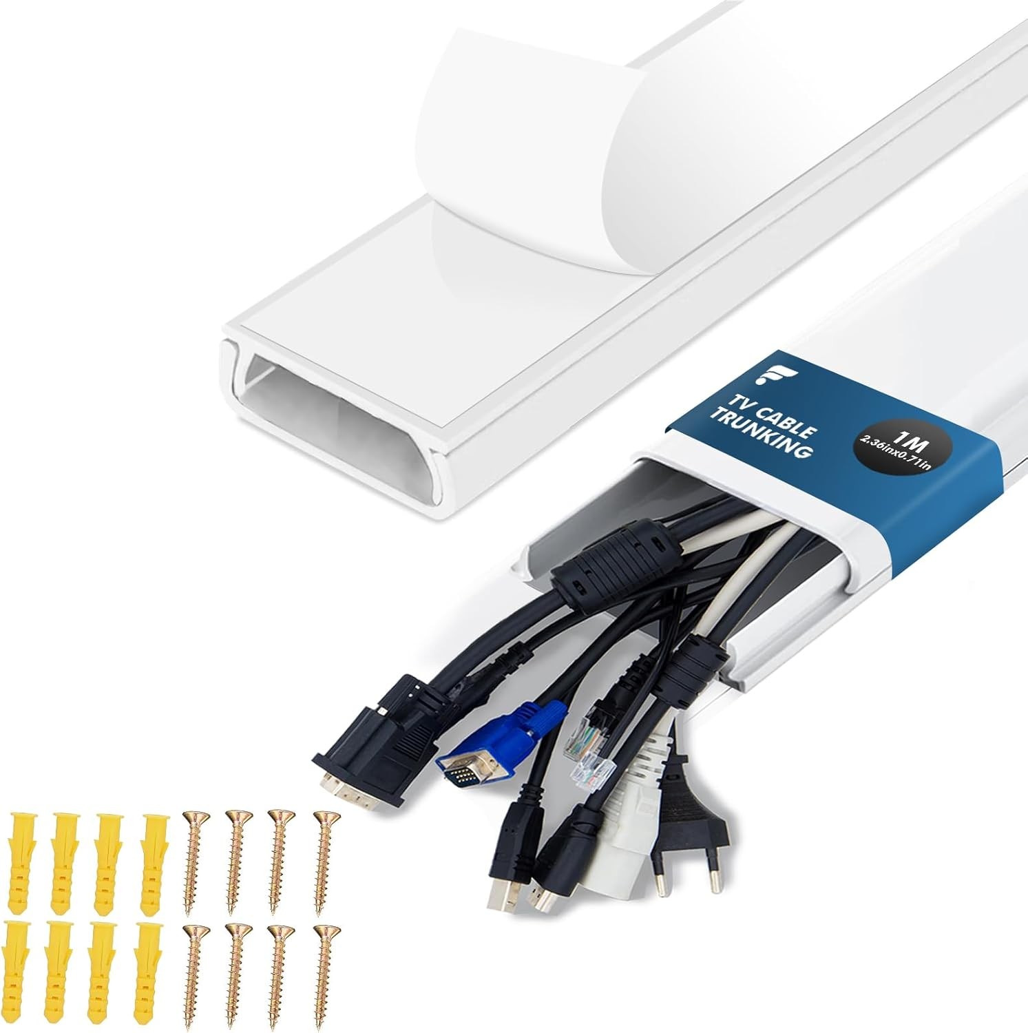 TV Cable Trunking 1m – PVC Wire Tidy for Wall Wire Cover, Hides 1~10 Cables,