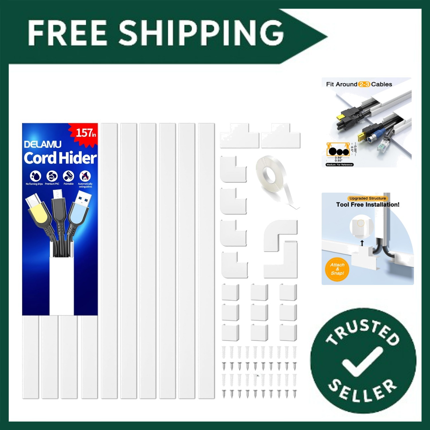 2pcs Wall Cord Hider 118 Inch, Self Adhesive Cable Cover for Wires, Flexible Wire Raceway