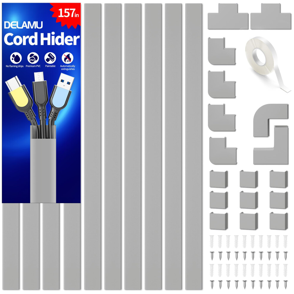 3Pcs PVC Cable Hider Grey Wire Cover Cord Organizer for Wall
