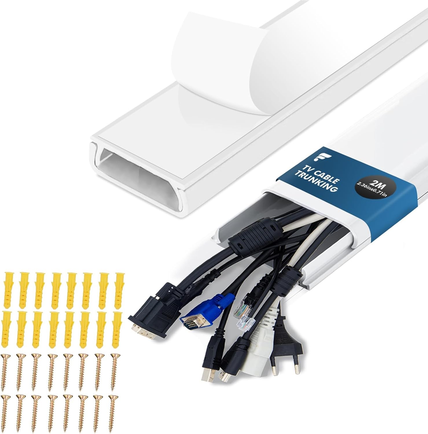 shinfly TV Cable Trunking 2m – PVC Wire Tidy for Wall Wire Cover, Hides 1~10