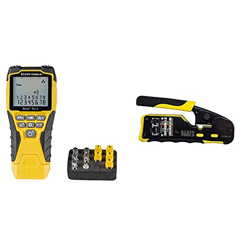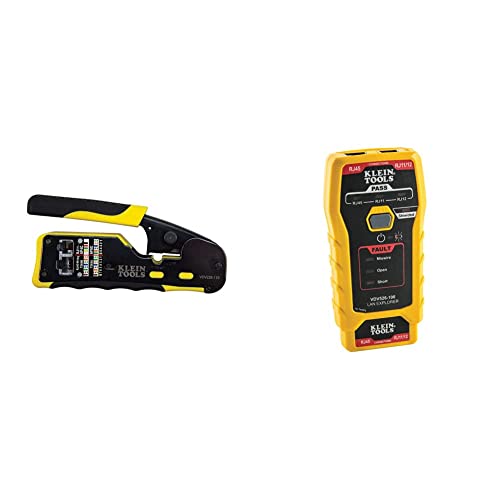 Klein Tools Pass-Thru Modular Wire Crimper, All-in-One Tool Cuts, Strips, Crimps, Fast and Reliable VDV226-110, Yellow/Black, Pack of 1 & KLEIN TOOLS VDV526-100 Cable Testers