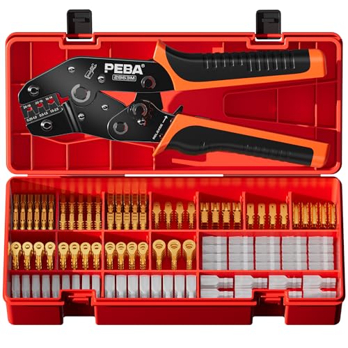 PEBA Crimping Tool Kit, Spade Connectors, Wire Crimper 0.25-2.5mm²/24-14AWG with 10 Types 2.8/4.8/6.3mm Spade Wire Connectors & Ring Terminals, Wire Crimping Tool for Spade Terminal Electrical Wiring