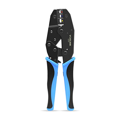 VCELINK GJ707 Wire Crimping Tool for Insulated Electrical Connectors 22-10 AWG, Ratchet Wire Terminal Crimper, Ratcheting Wire Crimp Pliers 8.9 Inch in Blue