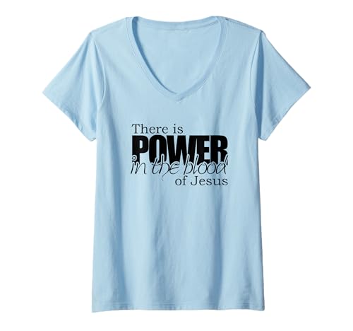 Women's Power in The Blood of Jesus Salvation Message V-Neck T-Shirt