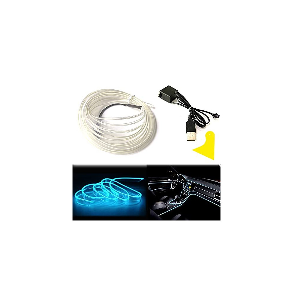 El Wire Ice Blue Interior Car LED Strip Lights, 5M Neon Wire USB 5V with Fuse Protection for Automotive Car Interior Decoration with 6mm Sewing Edge?