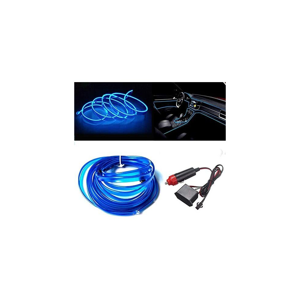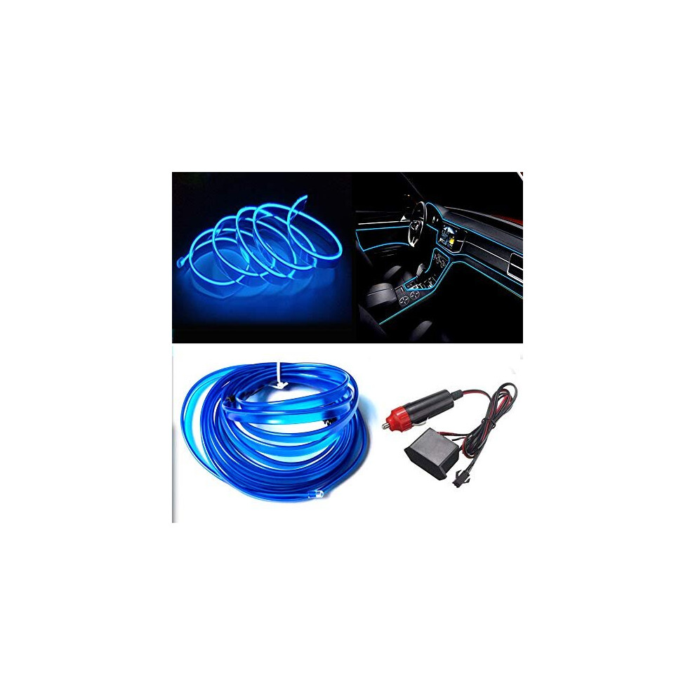 Blue El Wire with 6mm Sewing Edge, 5m neon Wire 12V with Fuse Protection for Automotive Car Interior Decoration