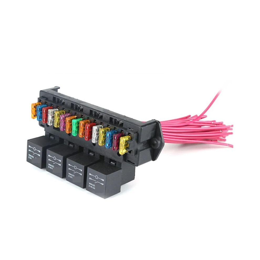 12V 4P With Wire Fuse Relay Box Block 4-Pin Automotive Relay Box 12V Relay Module Fuse Wire Included