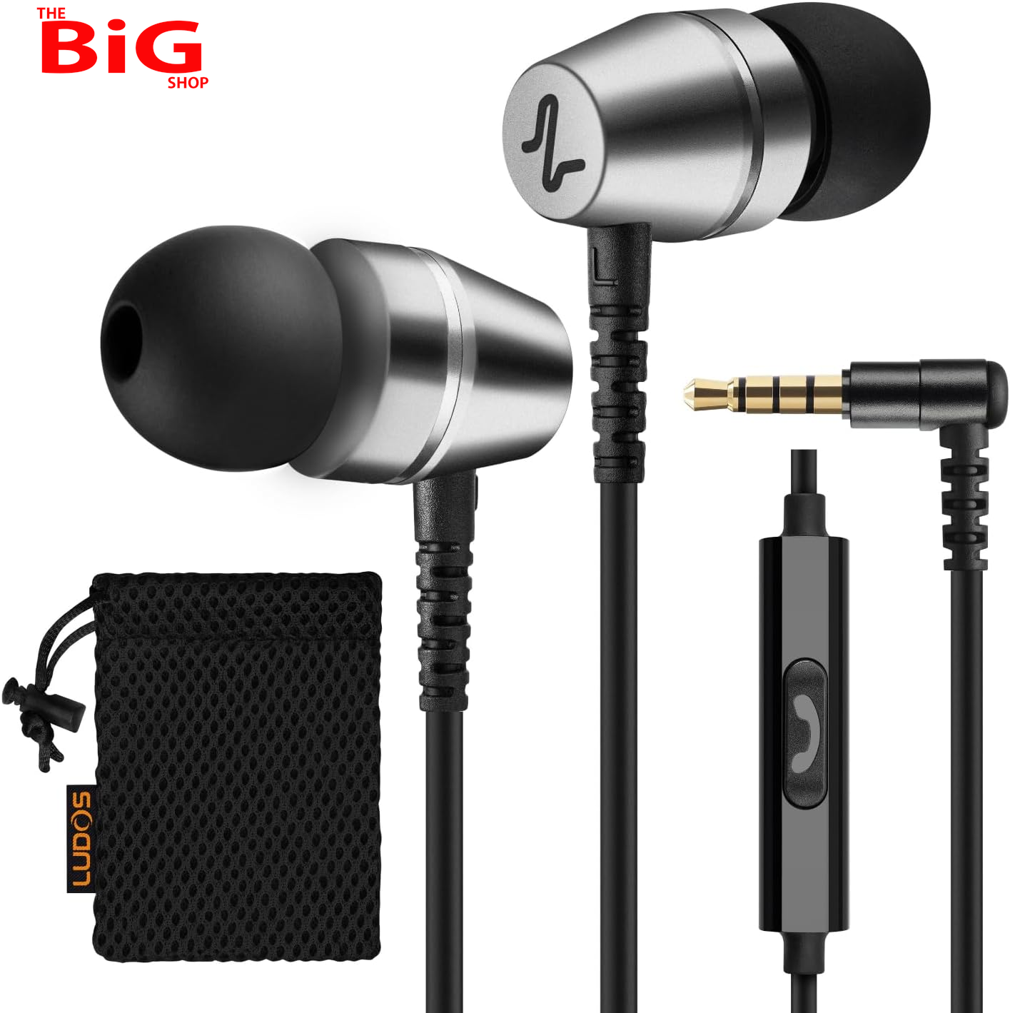 Ludos ULTRA Wired Earbuds: In-Ear Headphones with Memory Foam Tips, Microphone & Volume Control, Reinforced Cable, 3.5mm Jack