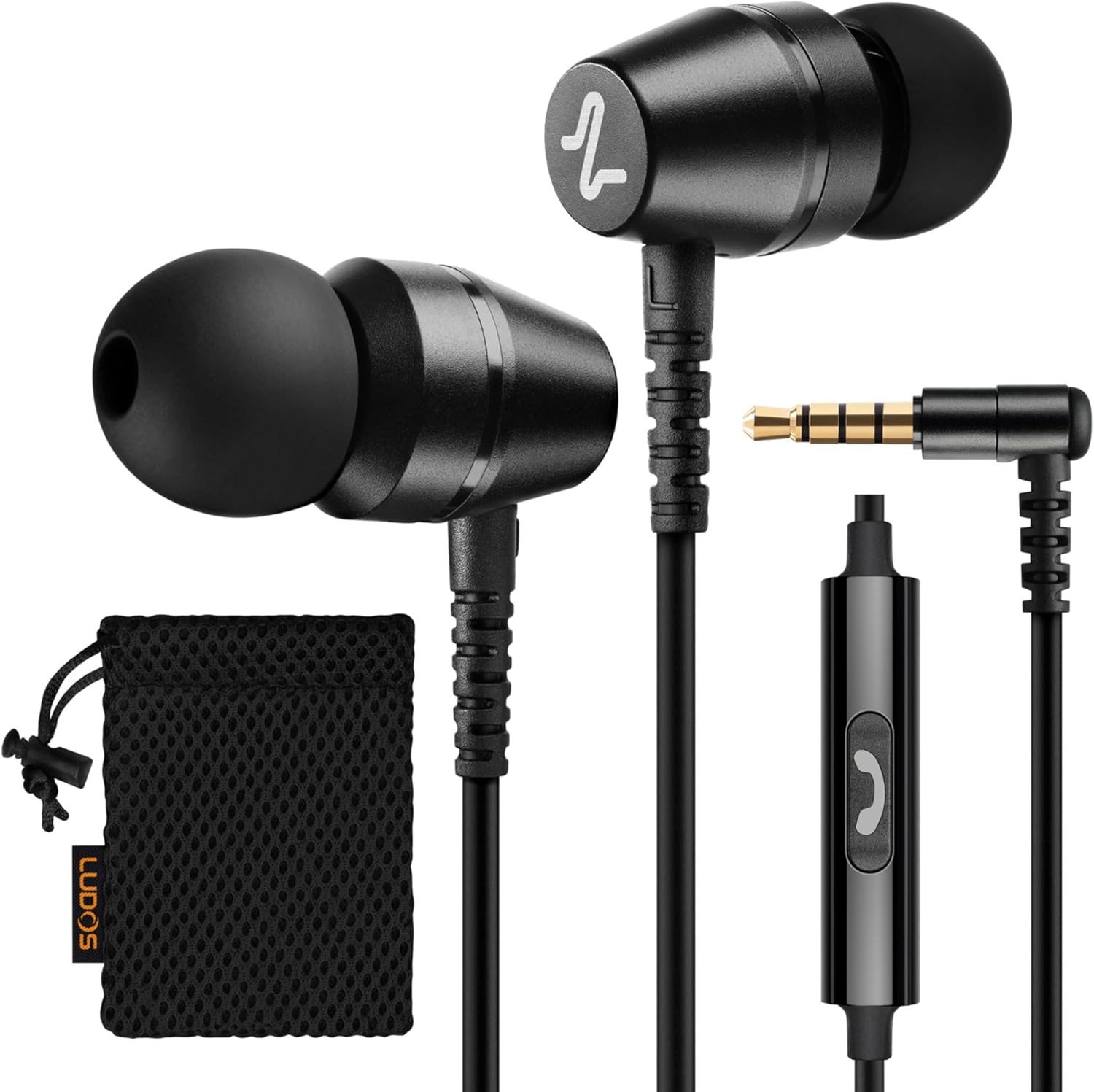 LUDOS CLAMOR Wired Earbuds in-Ear Headphones, Earphones with Microphone and Volume Control, Noise Isolating Memory Foam Eartips with Replacement