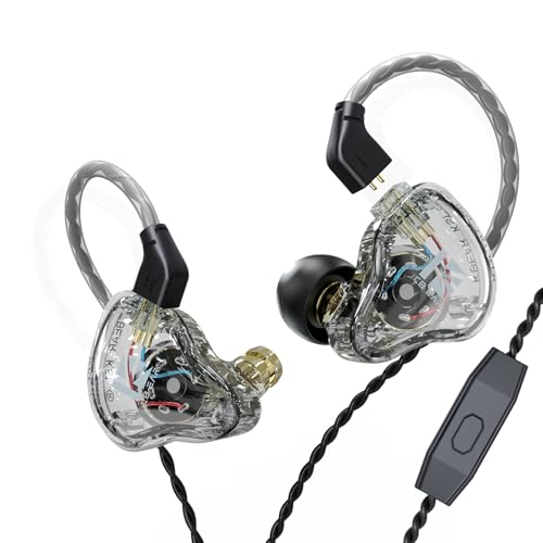 KBEAR KS1 Gaming Headset Wired Earbuds Excellent Bass Sound with Power in Ear Monitor, High Resolution in-Ear Headphone IEM Compatible with Android Phone PC,Mac (with Mic, Clear)