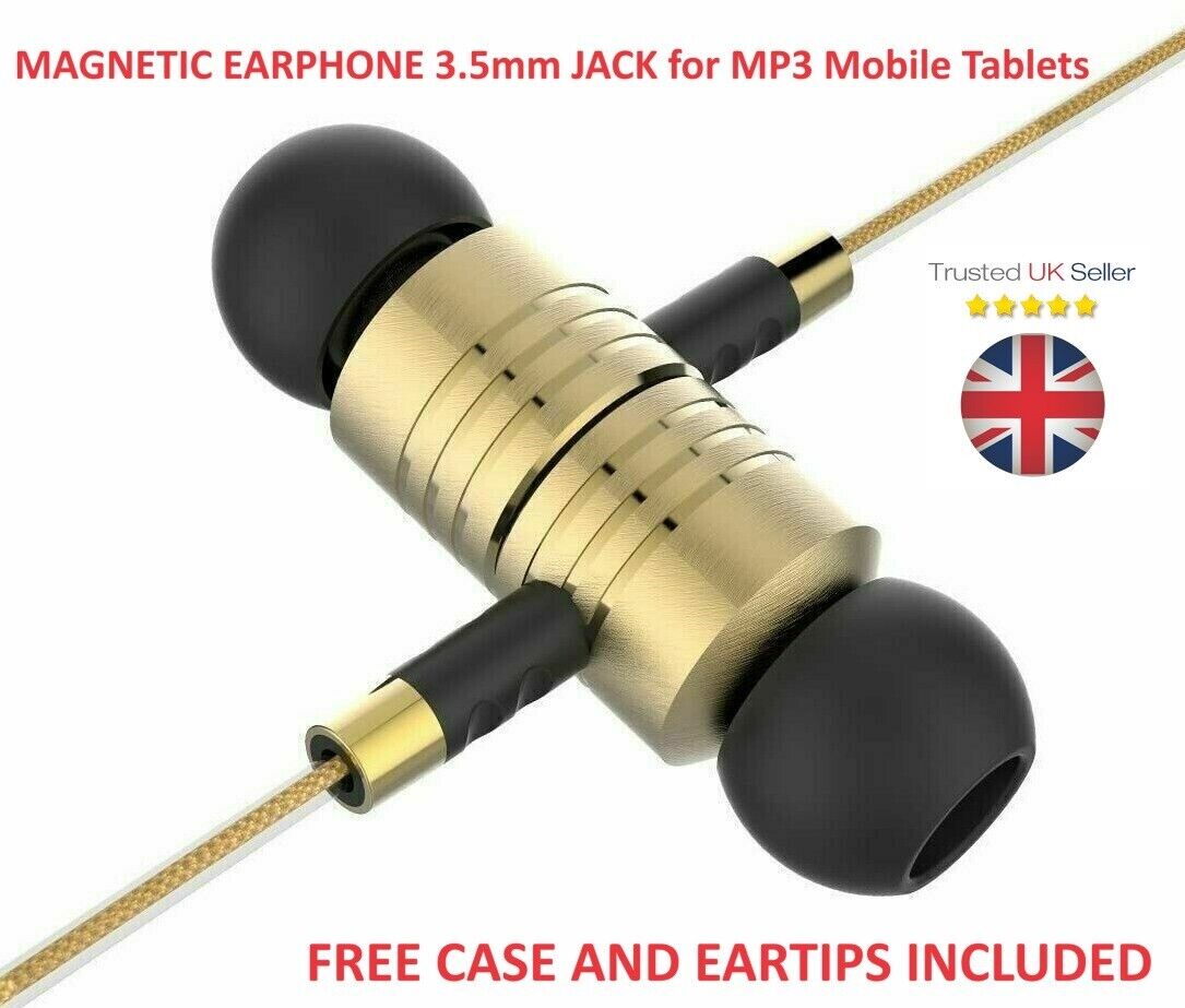 Earphones, Wired Headphones and Microphone 3.5mm In-Ear Magnetic Stereo Definition for PC and Android Mobile Phone for Galaxy, Huawei, Xiaomi etc (Black)