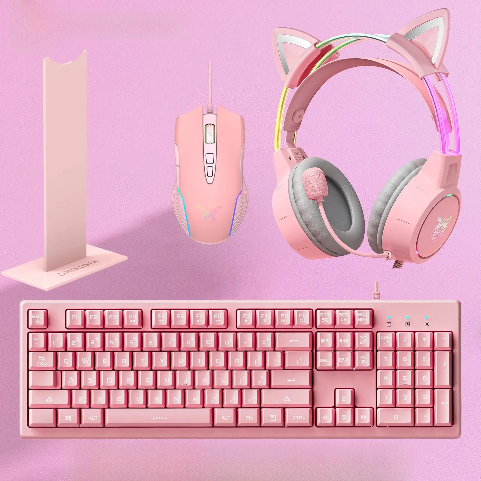 ONIKUMA Gaming Headphones Esports Package with Dynamic RGB Light Detachable Cat Ears Mouse Holder Wired Headset with Mic Gamer