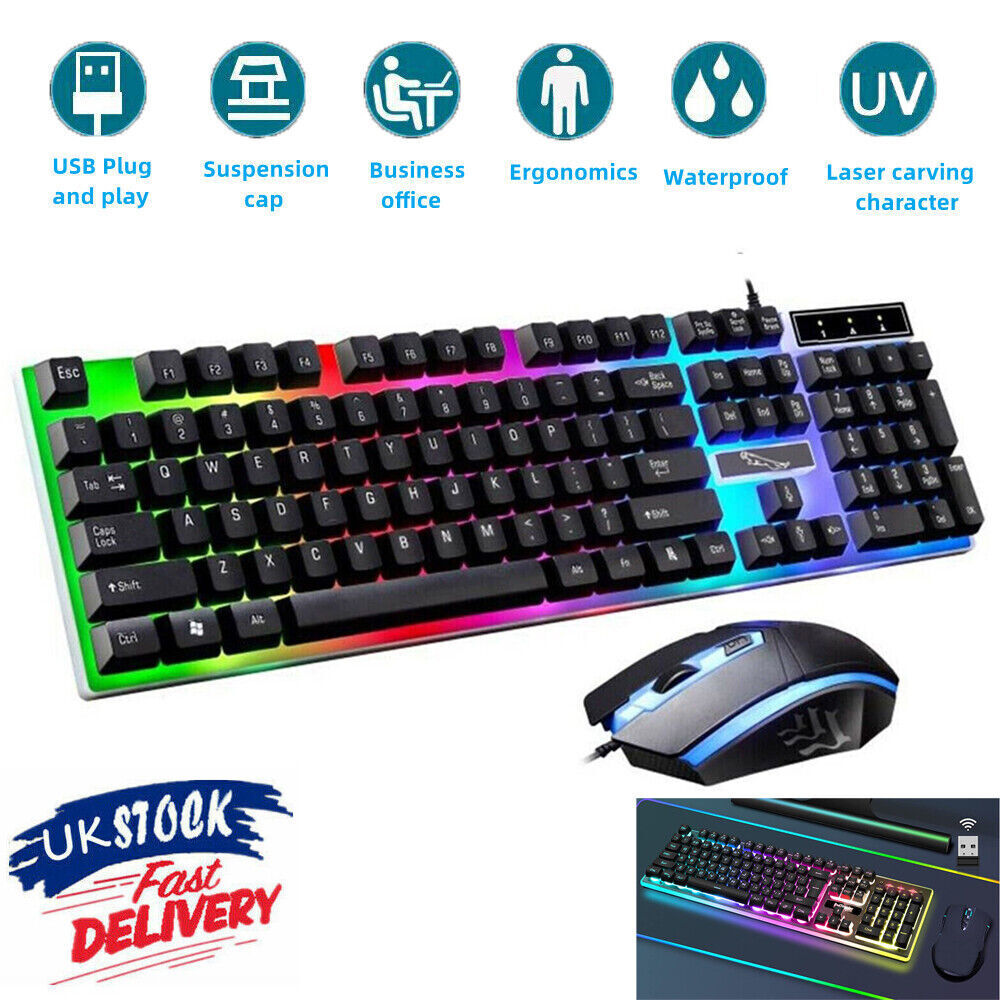 Gaming Keyboard Mouse Set Pad Rainbow LED Wired USB For PC Laptop PS4 Xbox One