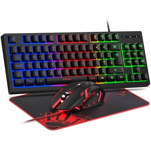 Rewurnth Gaming Keyboard and Mouse Set, UK Layout 75% TKL RGB Backlit Wired Keyboard, Ergonomic 4-Color LED Gaming Mouse, Large Mouse Pad, USB Plug & Play for PC, Mac, Xbox, PS4