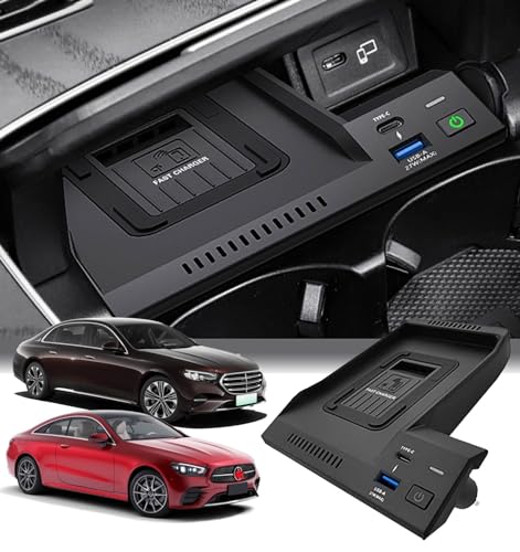Wireless Car Charger Fit for Mercedes-Benz E-Class 2016-2023, 15W Fast Charging Phone Charger Pad Mat with 27W 2-Port Type-C and USB-A Qc3.0 Center Console Interior Accessories(A)