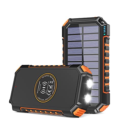 Solar Charger 26800mAh for Outdoor - Wireless Power Bank with LED Flashlight - 3.0A Fast Charging External Battery Bank with USB C for iPhone Android Tablet & Camping Hiking