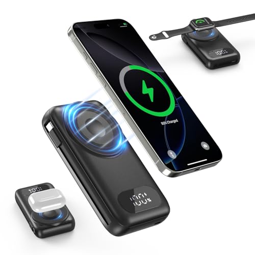 Magnetic Portable Charger 26800mAh for iPhone 17/16/15/14/13/12 with Built-in Cables,6-in-1 Wireless Power Bank with iWatch Charger and Compatible with Samsung, Android phones, AirPods(Black)