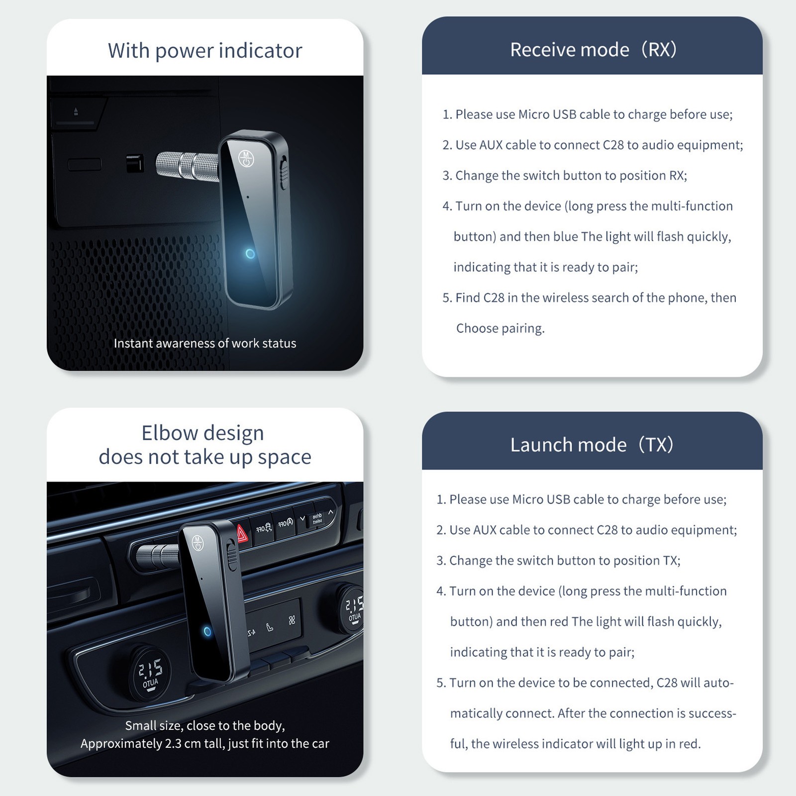 Elprico Bluetooth 5.3 Audio Adapter, 2 in 1 Wireless Transmitter and Receiver with 3.5mm AUX Jack for TV, Car, Computer, Speakers
