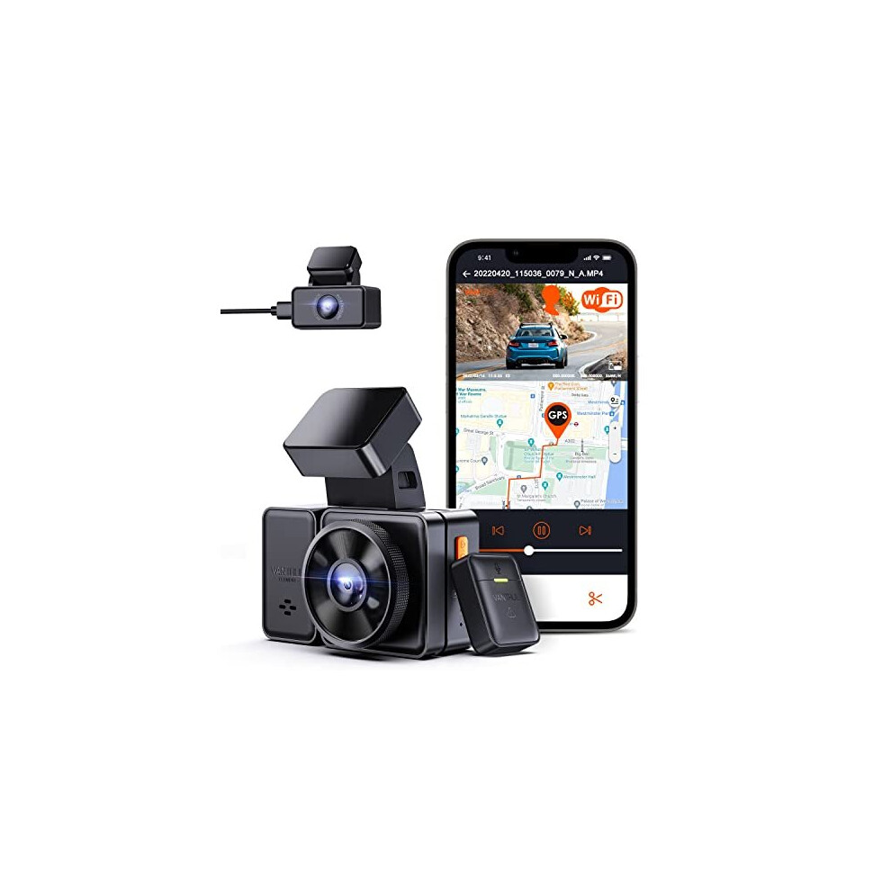 Wireless Dash Cam with Night Vision, Dual Lens Car Recorder System, Loop Recording Collision Detection GPS Tracking Compact Design Easy Mounting