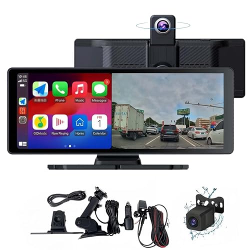 (As show, One size) Portable Wireless Carplay Car Stereo with Dash Cam - 10.26In HD IPS Screen, Android Auto, 1080P Backup Camera, Bluetooth