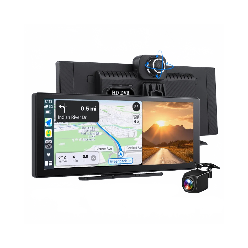 10.26" Wireless Carplay Screen, CarPlay & Android Auto Car Stereo with 360 Rotation 4K Dash Cam 1080p Rear Camera, GPS Navigation, Mirror Link, Voice Control, Siri