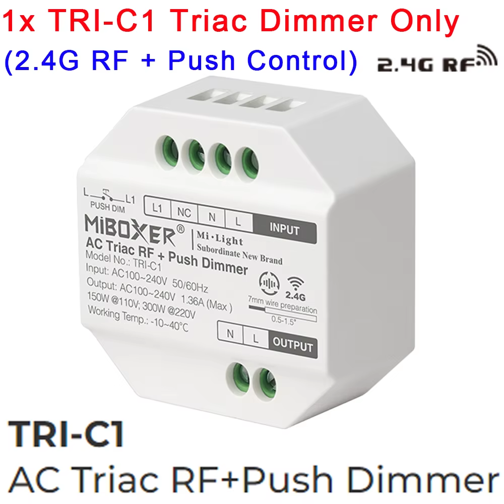 LED Triac RF Push Dimmer Switch AC110V 220V TRI-C1 2.4Ghz Wireless Remote Contro