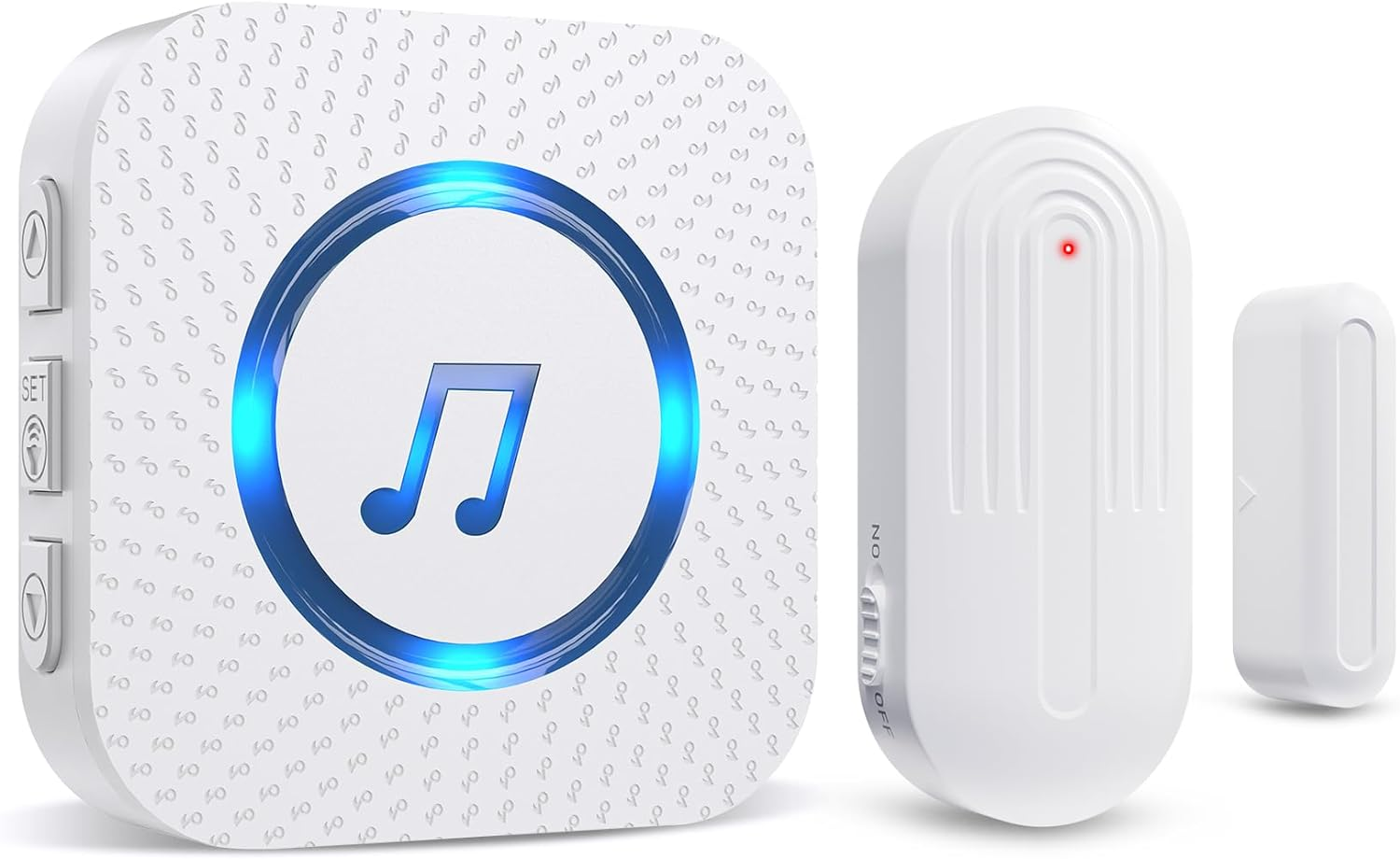 SECRUI Wireless Door Open Sensor Alarm Chime, 400ft Operating Range 52 Chimes Adjustable Volume with Mute Mode LED Indicators Magnetic Door Alarm Sensor for Home Store Office Security