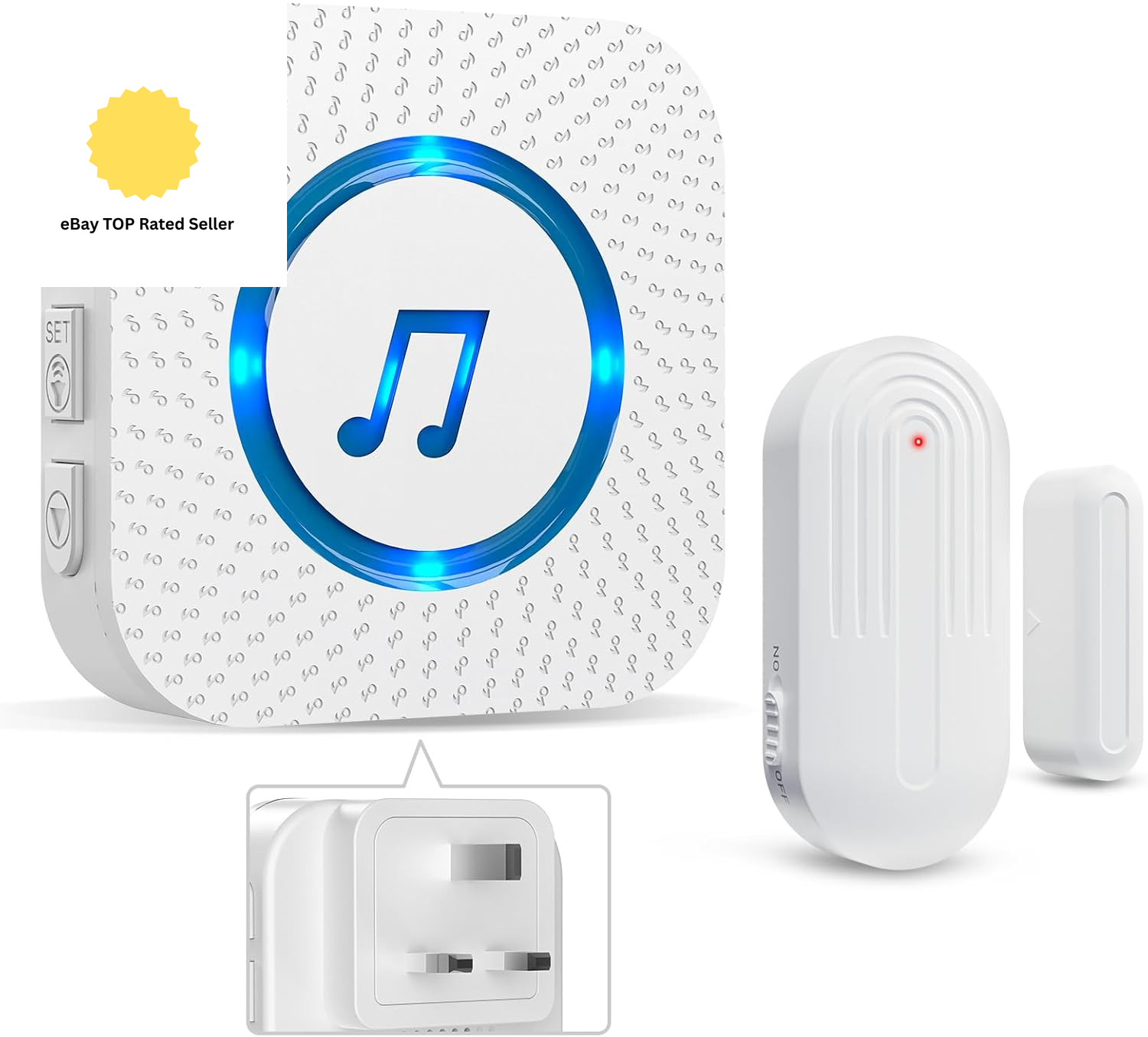 SANJIE Wireless Door Open Alarm Sensor Chime, 600FT Operating Range 55 Ringtones 5 Volume Level with LED Indicator,Door Alarm for Home Store Office Security When Opens,1 UK Plug-in Receiver 1 Sensor